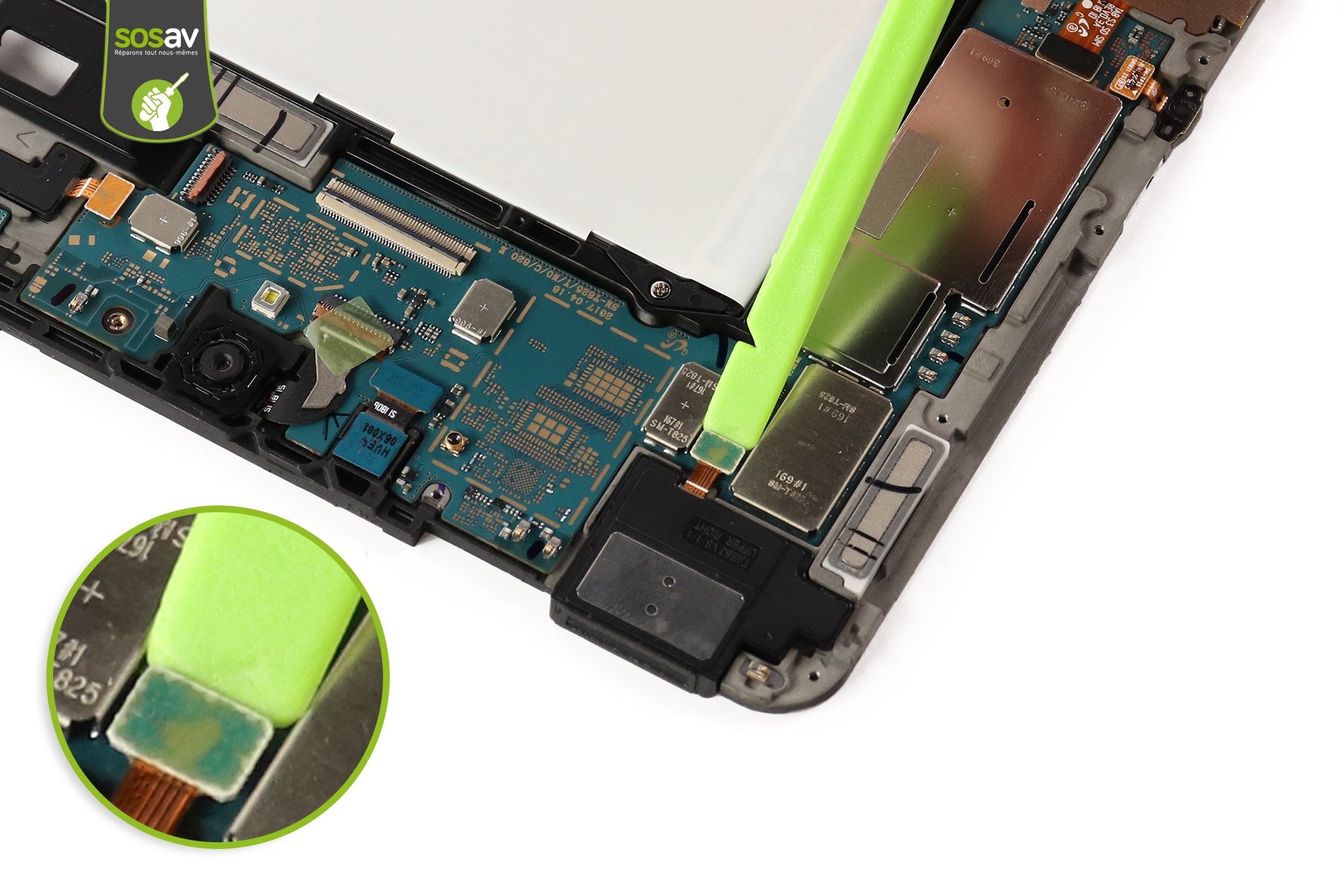 Le haut-parleur haut gauche Galaxy Tab S3 9.7" est sorti.En cas de problème de son, changez-le facilement en suivant ce tuto gratuit !