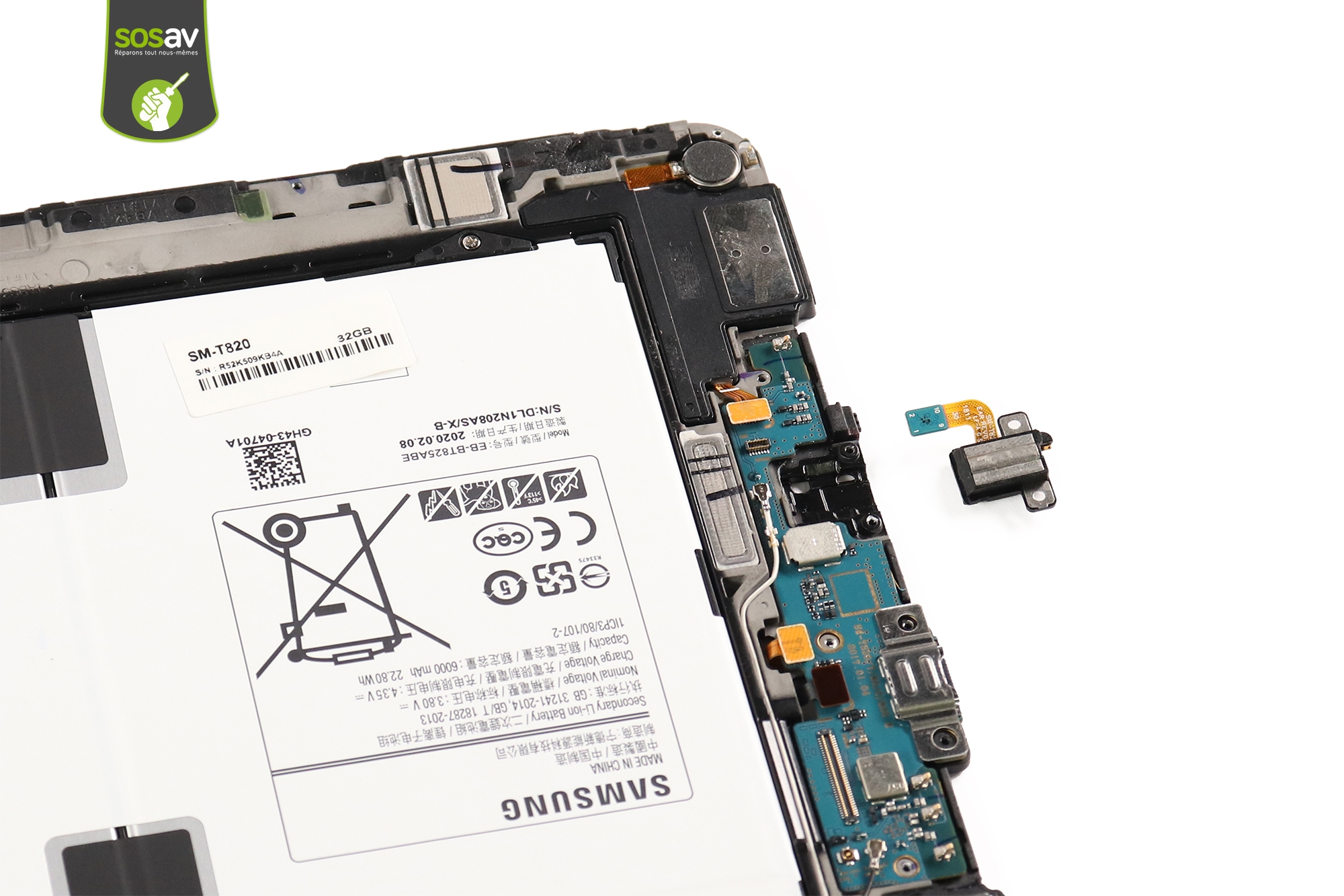 La prise jack Galaxy Tab S3 9.7" est déposée.Suivez les étapes de ce tuto gratuit pour la remplacer en cas de besoin !