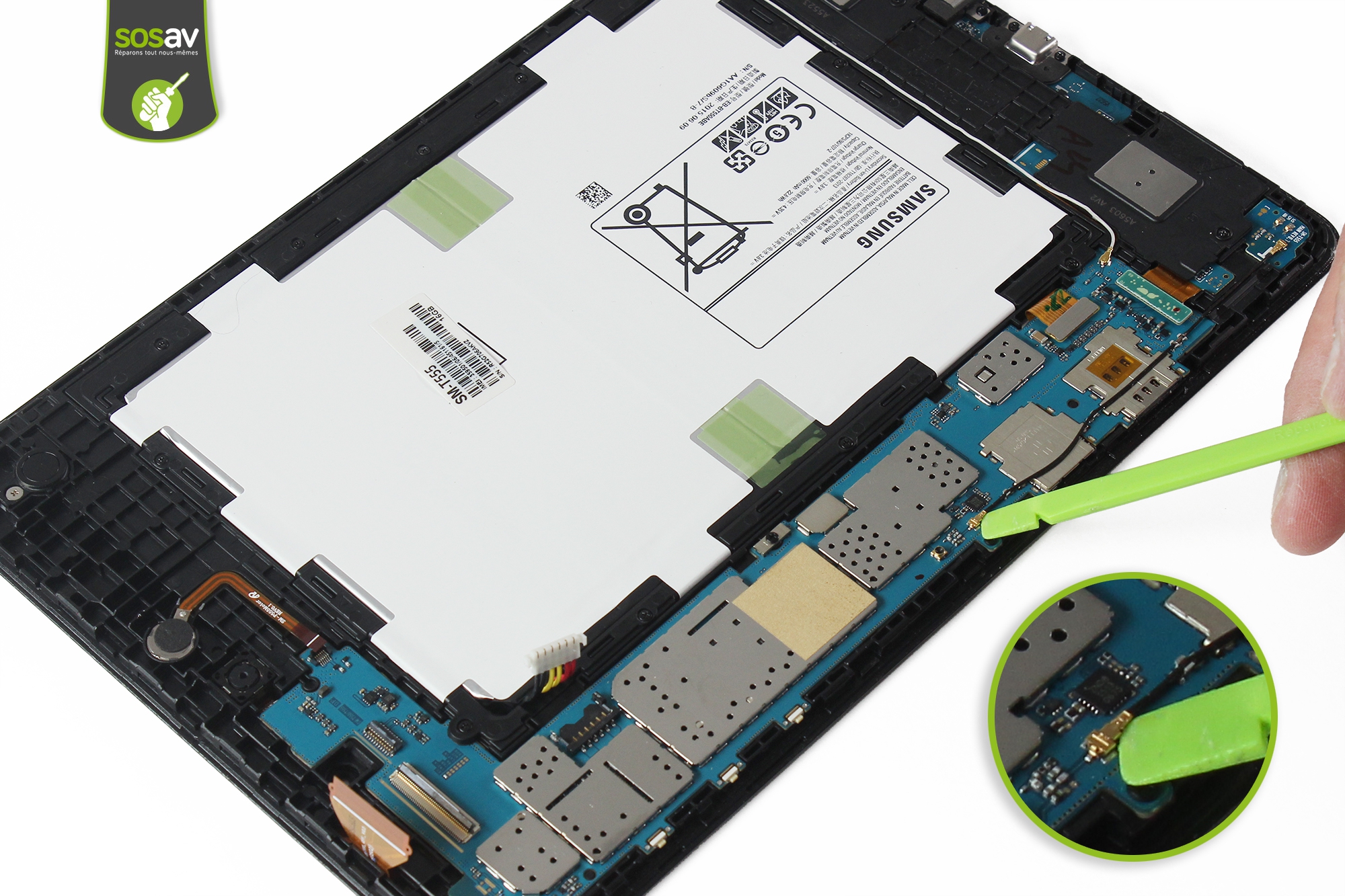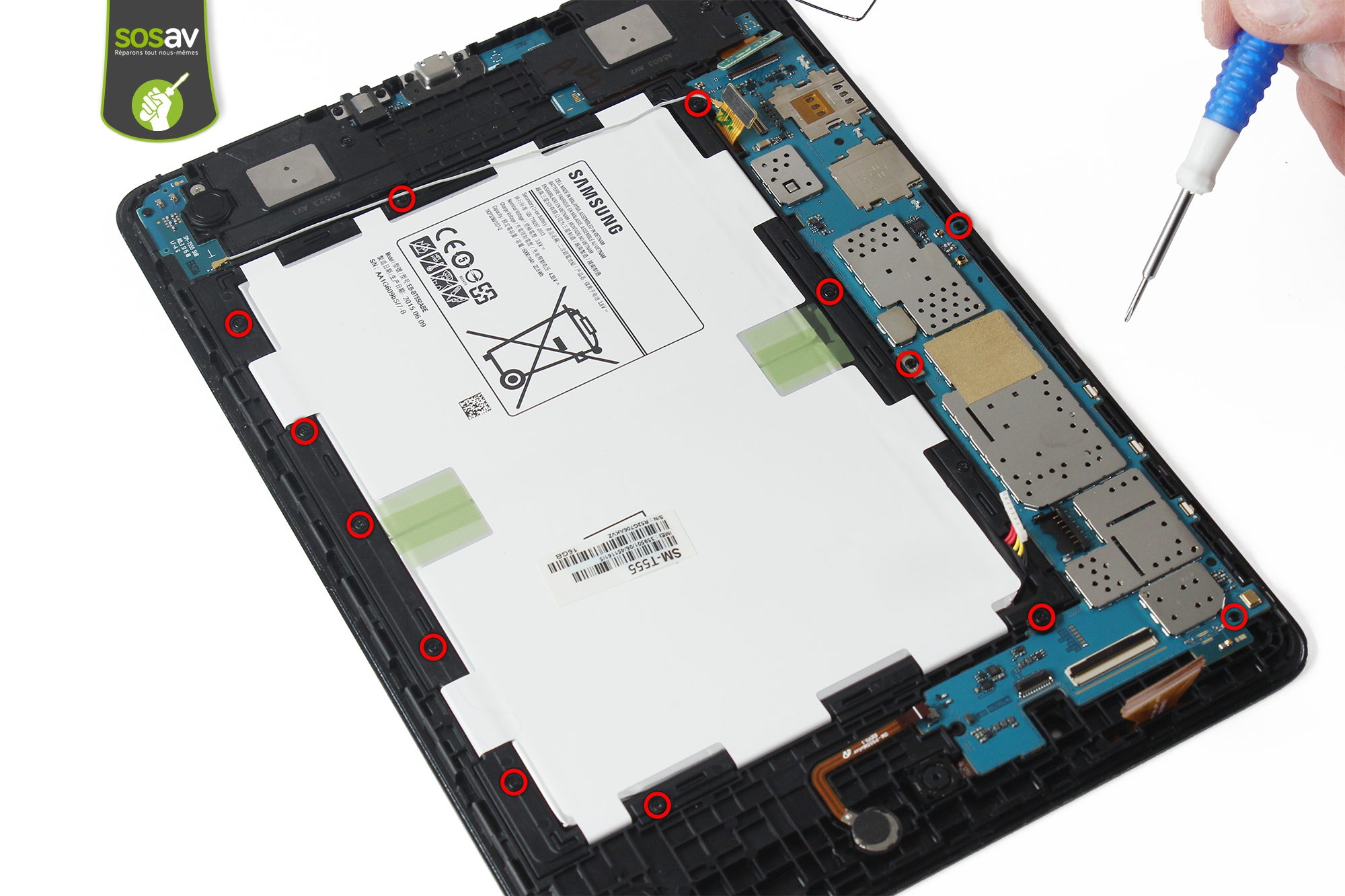 Vous ne savez pas comment vous y prendre pour changer votre carte mère Galaxy Tab A 9,7" fatiguée de votre ? Difficile d'utiliser la tablette sans une carte mère fonctionnelle... Pour vous aider à la remplacer à moindres frais, SOSav met à votre disposition un guide de réparation complet. Les techniciens vous expliquent comment démonter la tablette pour retirer la carte mère. Des photos et commentaires accompagnent chaque étape pour vous mener vers le droit chemin de la réparation réussie ! Et pour le remontage de votre nouvelle carte mère reconditionnée ou récupérée sur une autre Tab A 9.7", il n'y a qu'à suivre les étapes dans le sens inverse.