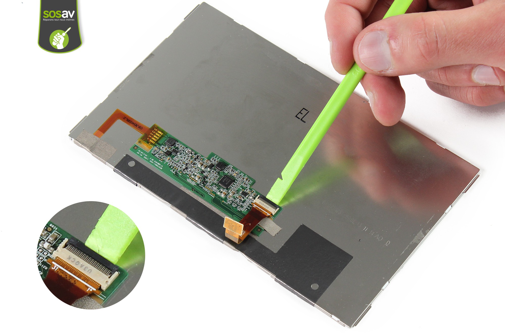 Déconnectez la nappe de l'écran LCD à l'aide de la spatule en nylon.
