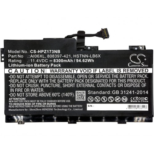 Batterie HP 8300mAh / 94.62Wh compatible ZBook 17 G3, ZBook 17 G3 M9L94AV, ZBook 17 G3 T7V61ET, ZBook 17 G3 T7V62ET, ZBook 17 G3 T7V64ET, ZBook 17 G3 T7V65ET, ZBook 17 G3 T7V67EA, ZBook 17 G3 TZV66eA, ZBook 17 G3 V1Q00UT, ZBook 17 G3 V1Q04UT, ZBook 17 G3 V1Q05UT, ZBook 17 G3 V1Q07UT, ZBook 17 G3 V1Q08UT, ZBook 17 G3 Workstation, ZBook 17 G3 X9T88UT