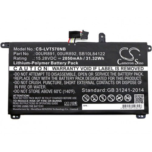 Batterie Lenovo 2050mAh / 31.32Wh 15,28V compatible T570, ThinkPad T570, ThinkPad T570 20H9003ACD, ThinkPad T570 20H9003BCD,