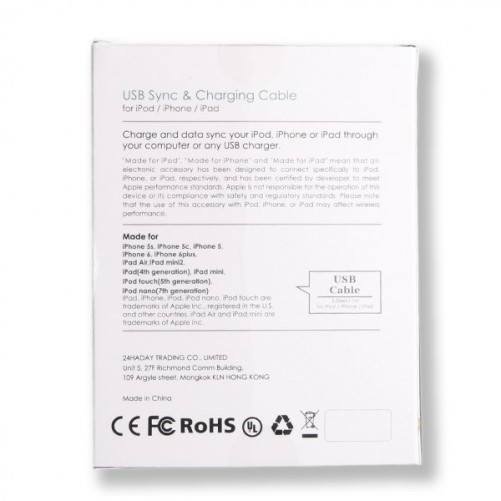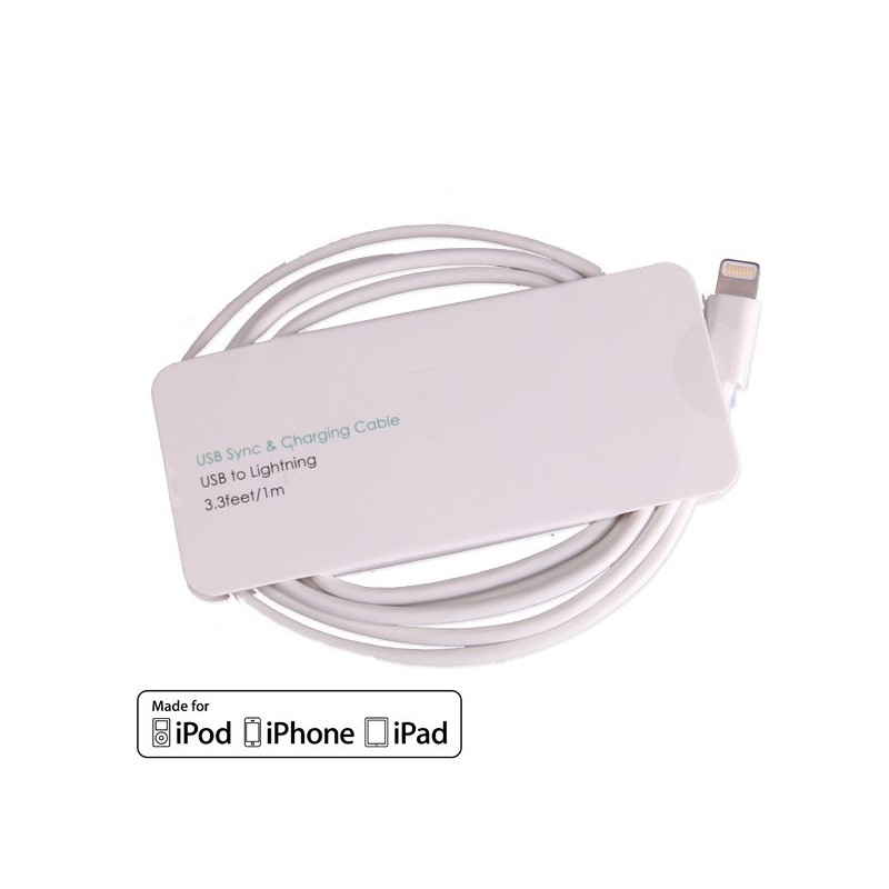 Câble Lightning blanc certifié Apple Made for iPhone (MFI)