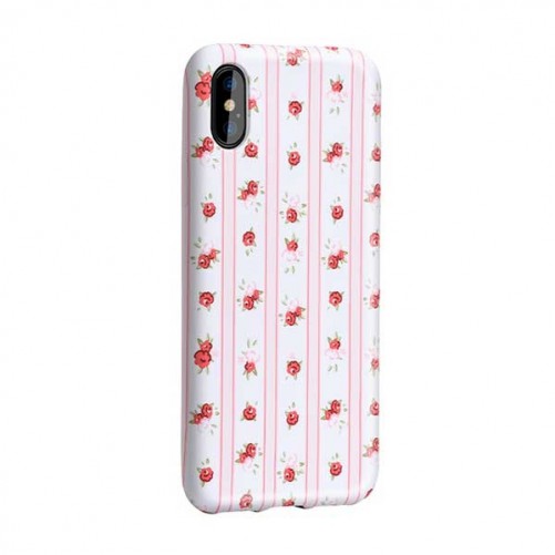 Coque à motifs fleuris rayée rose/blanc Hoco iPhone X Xs