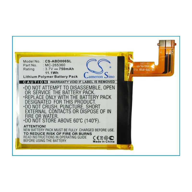 Batterie eBook / liseuse Amazon 750mAh/2.78Wh 3,7V compatible D01100, Kindle 4, Kindle 4G, Kindle 5, Kindle 6