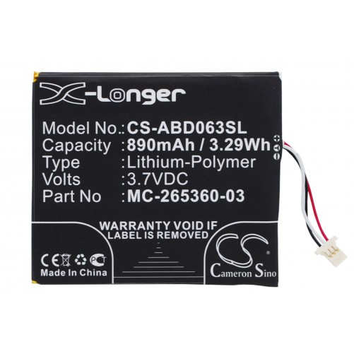 Batterie eBook / liseuse Amazon 890mAh / 3.29Wh 3,7V compatible kindle 499, kindle 558, Kindle 7, Kindle 7th Generation, SY69