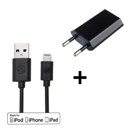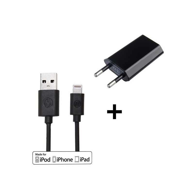 Pack 2 en 1 noir MFI cable lightning + chargeur secteur agréé CE